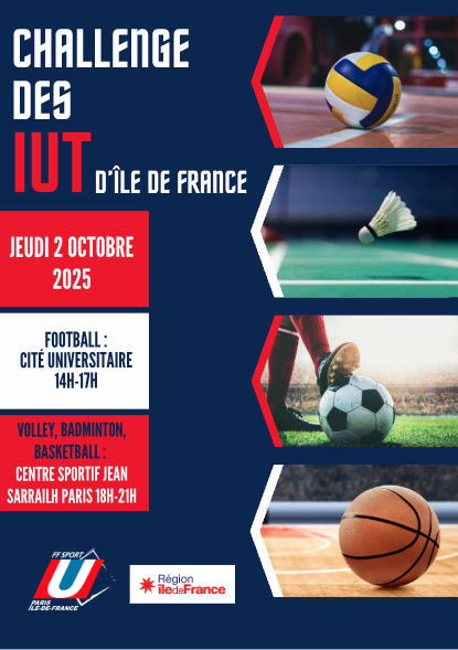 Le 2 octobre 2025, 500 étudiants issus de 16 IUT d’Île‑de‑France ont participé à la 4ᵉ édition du Challenge Sportif inter‑IUT.